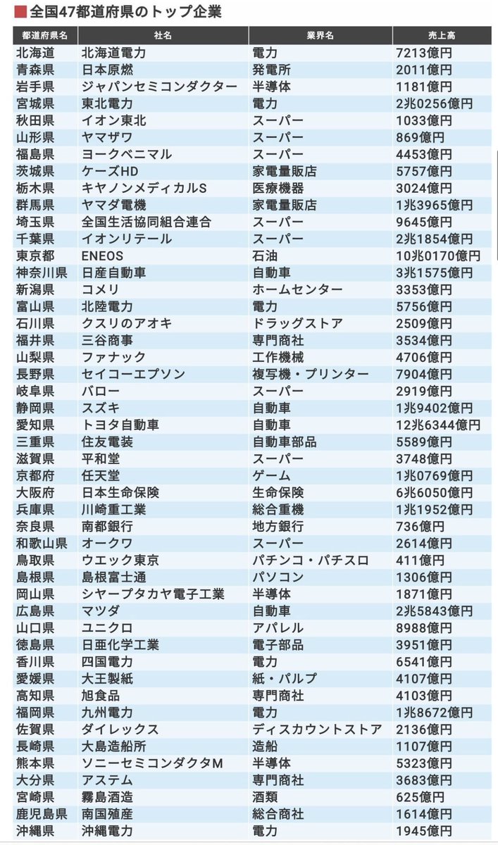 愛知はトヨタ 山口はユニクロ 全国の都道府県における 売り上げトップ企業 が発表される 宮崎県では意外な企業がランクイン Togetter